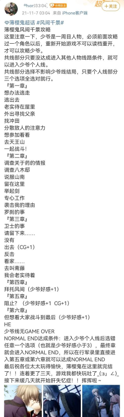 《薄樱鬼游戏录》中角色攻略包括冲田总司线、风间千景线等,攻略可帮助玩家解锁不同结局,体验角色互动。