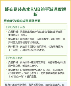 推荐支持自由交易装备的手游,如《剑网3无界手游》,提供稳定搬砖收益,适合新手玩家,可轻松积累财富。