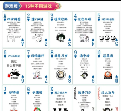 1.首先,所有人坐成一圈,选出一个人坐庄负责发牌(选法请随意),每人一张牌. 2.从第一个收到扑克的人开始,每个人依次亮出自己的扑克,不同的扑克有不同的意义
