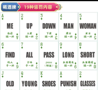 记得曾经玩过一种喝酒扑克游戏 一副扑克牌没有双王 一人一张牌好像5是照相机动一下就要喝酒7上面那个喝酒8下面那个喝酒以上..求准确玩法 显示全部 关注者 44 被浏览 205,420 关注问题 写回答 邀请回答 好问题 20 添加评论 分享 登录后你可以 不限量看优质回答 私信答主深度交流 精彩内容一键收藏 登录 关注 1 人 赞同了该回答 我们这里4是过,摸到4就直接下一个人,名字是金陵十三钗