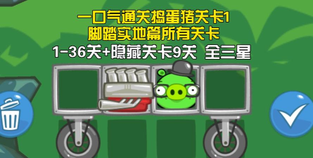 捣蛋猪是一款物理引擎益智小游戏,玩家需用道具组装车辆,帮助小猪安全到达终点。游戏规则:鼠标点击拖动道具组合车辆,点击√确定,点击左上角圆箭头重玩。目标是合理组装,帮助捣蛋猪吃到星星并到达终点。