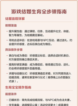 支持结婚生子的游戏包括《魔兽世界》(即将上线结婚系统)、《符文工房4》(可与角色结婚生子)、《神鬼寓言2》(可结婚生子并培养后代)、《金垦小镇》(动物繁殖系统)和《牧场物语:起源的大地》(可结婚生子体验田园生活)。