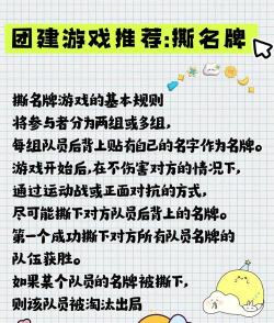 撕名牌游戏规则包括分组对抗,每队成员需撕下对手名牌以获胜,被撕名牌者淘汰。可设定积分制或限时制,确保公平竞争。