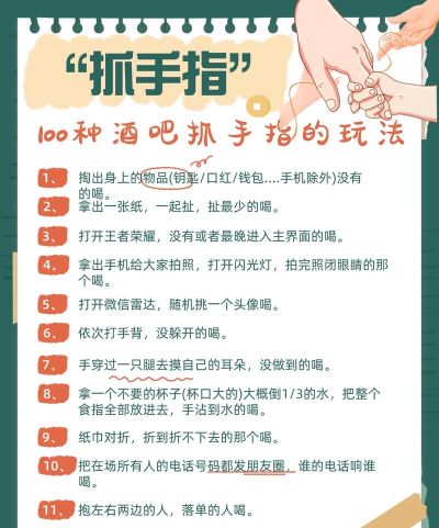 酒吧抓手指游戏通常涉及快速反应和手指抓握,具体规则可能因地区或人群而异,常见玩法包括快速抓手指、猜拳等,增加酒局趣味性。