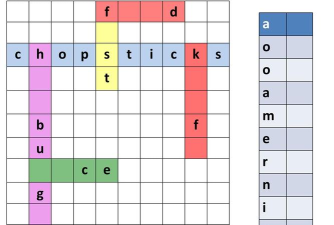 填字类游戏是常见的益智教育游戏,游戏一般设置在一个矩形表格内.表格分成许多大小相同的方格,方格有两种不同的颜色,如黑白两种,白色的方格组成一些交叉的行与列.玩家根据提供的信息,将答案填入这些白色方格之中,每次只能填一个字,但是必须满足题目中行与列的要求