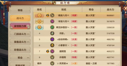 天龙八部手游战力排名动态