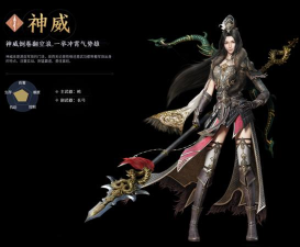 神威 神威是目前的版本之子,即使玩家不氪金的话也很容易做到肉到离谱的境界,因此在副本、帮会、野战中也是一个必备的职业,可以用来吸引火力,因此一个具能抗的神威可以说是非常受其他玩家喜爱的,也十分吃香.