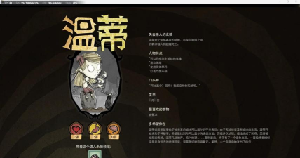 一些 关于人物选择 新手一开始还是建议选择威尔逊,威尔逊怎么说也是游戏主角,得有点牌面. 威尔逊的优点就是没有明显缺点,所以整体能力比较平衡,而且他的胡子有保温效果,有利于新手度过第一个冬天. 关于人物的属性 就只说最显眼的三个属性: 生命值:每个角色的生命值不同,到0就原地去世 精神值:过低会引起影子的袭击,以及会有一些特殊的反应 饱腹值:降到0时,会导致生命值不断减少 关于人物的其他的属性就等...