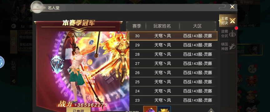奖励规则 1.参与奖励:每次开启活动可参与10次,参与场次达到1、5、10时都将获得奖励. 2.赛季奖励:赛季奖励包含段位奖励和排名奖励,每名玩家至少需要参与10场才能获得. 3.段位奖励:每个赛季结束后,会根据玩家所在的段位发放奖励,段位越高奖励越丰厚. 4.排行奖励:每个赛季结束后,排行榜前30的玩家会获得稀有奖励,排名越靠前奖励越丰厚. 5.当前区服等级上限达到99级后,在王 者对决中成为该赛区榜首的玩家将载入名人堂史册,被全赛区玩家膜拜.
