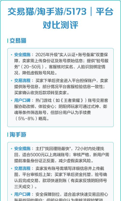 淘手游与交易猫等平台相比,用户评价褒贬不一,部分认为其交易流程存在风险,而交易猫则被部分用户视为更正规的交易平台。