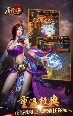 屠龙霸业手游特色: 1、千人同屏,万人城战,体验最真实战斗pk; 2、酷炫时装,神装时装套装,翅膀坐骑幻化; 3、公会大战,平民逆袭,爆金币,万人攻城; 4、独孤求败,以一当百无人可敌,完美绝杀!