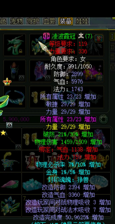 改12的130级武器:红云火霞扇. 不亏是改12的,武器总伤害达到2.5W,再加上两个金相性5和两个所有相性5,还有绿属性的强火法伤害10%,这伤害就彻底爆炸了吧,而且这是还没算上改12增加的改造属性,所有属性36,这又是一个让人惊叹的加成. 改造12增加的伤害竟然有1.56万,这一件武器光改造伤害就已经顶得上好几把武器了吧,而且共鸣属性却不是增加伤害,共鸣属性反而是法术必杀率,而且这个必杀率竟然增加了50%,细思极恐,任谁也顶不住吧.