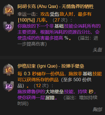 本BD不带萨卡兰姆的使者,故力量属性压力较大,请尽可能在装备上多出太古力量,优先满足2255力量再去追求攻速收益(一般来说要2520力量,但最后一个稀有节点给的是物理伤可以不吃加成)。