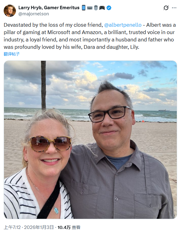 2025年12月31日,微软Xbox业务初创及发展时期的元老级人物、前规划总监Albert Penello因癌症逝世,享年55岁,他的离世在游戏产业界引发了广泛而深切的哀悼。
