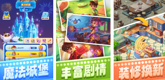 传统三消结构的优化版本,专为视力与操作精度下降群体优化:按钮尺寸加大、消除判定宽松、动画速度可调。关卡数量达数千关,但每10关设置一个休息节点,避免连续操作疲劳。特色“主题餐厅装修系统”支持自由摆放桌椅、灯具、装饰画等元素,所有物品均标注中文名称,强化现实联想与空间规划能力训练。