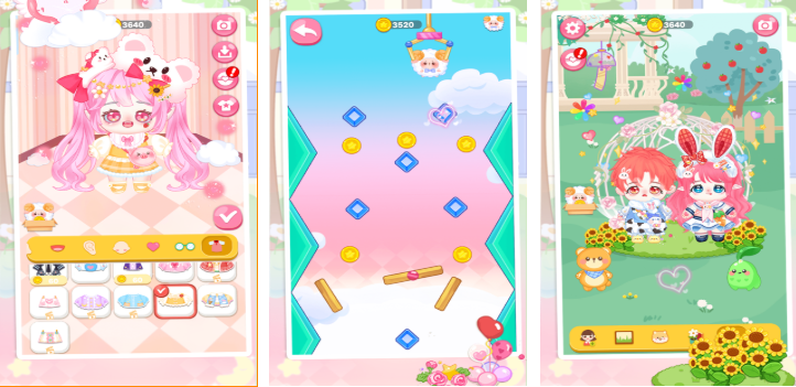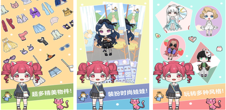 融合扭蛋收集机制与轻度解压玩法的换装向应用,主打“随机惊喜+自主搭配”双线体验。内置超百套主题服装、发型与配饰,涵盖校园、派对、四季等多类风格,所有道具均可自由组合,无解锁限制。UI采用高饱和度萌系漫画风,操作反馈即时清晰,背景音乐舒缓,无强制等待或付费加速设计,有助于培养孩子的选择判断力与审美协调感。
