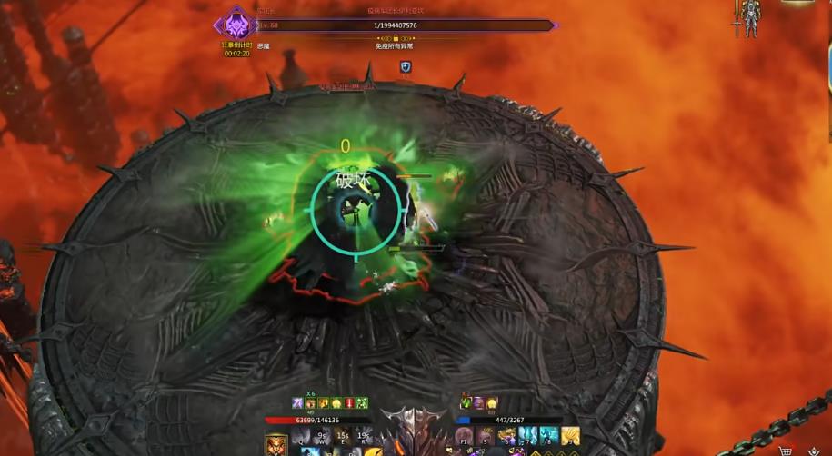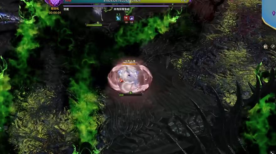 第七个技能是四连重锤,会锁定一名玩家连续进行四段攻击,当玩家发现被锁定了不要乱跑。可能会干扰队友输出,最好远离一点距离后,左右小幅度走位,找间隙躲避,第四段攻击时靠近boss即可。军团长会朝着前方挥砍一刀后,会出现一个绿色虫洞,随后地板出现一个圈,并对圈内进行爆炸击飞。