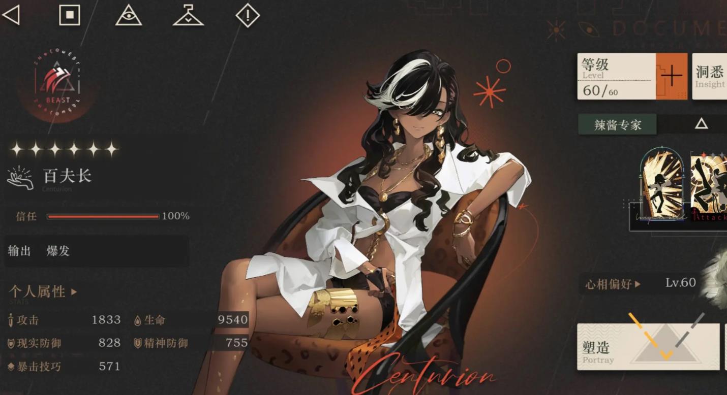 百夫长的狂想效果只侧重于提升伤害,没有给到任何的辅助类机制,定位算得上是兽系类仪式主C。她的同队队友就可携带狂想梅兰妮,又因为其真正的大招长期处于不用状态,而其当做大招的小技能却不被当做是大招,就明显与以虚构集、莫莉德尔、嚼嚼松果等主流仪式体系角色有明显不适配。