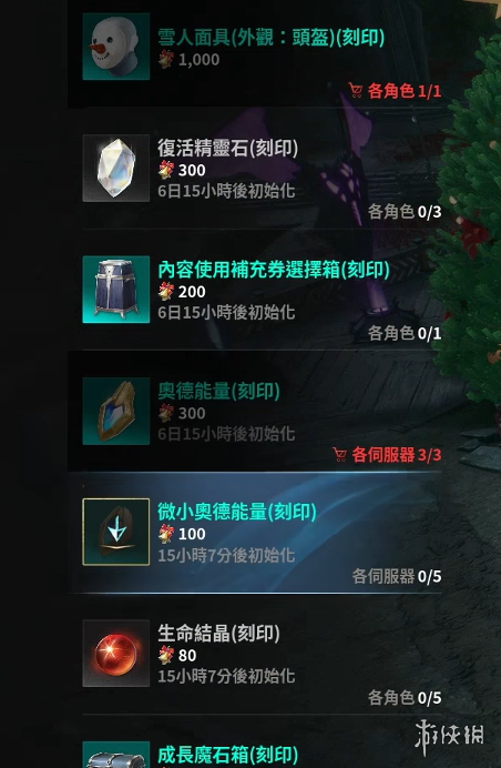 3、在圣诞铃铛庆典商店,玩家也可以找到微小奥德能量的兑换选项,注意该商店是限时的。