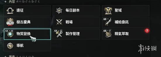 1、在物质转换页面可以使用材料合成奥德能量,每周周三可以换7次。