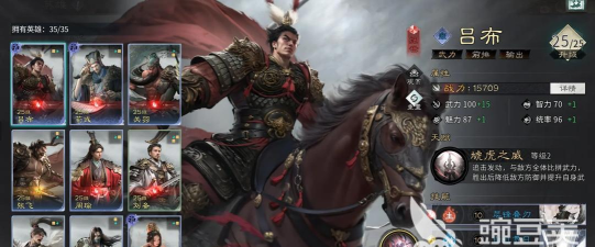 根据了解,在游戏的设定中,吕布本身有全武将最高的武力成长值,因此他在战斗中能打出极高的伤害,是队伍中的主要输出担当,其自带战法无双作为主动技,可以对敌军单体造成2次兵刃伤害,首次目标必中,第二次随机目标,且每次成功造成伤害后,会获得1层“无双”效果,最多叠加8次,当叠满时,还能额外触发1次全体aoe,爆发力极强,能让玩家得到不错的战斗体验。