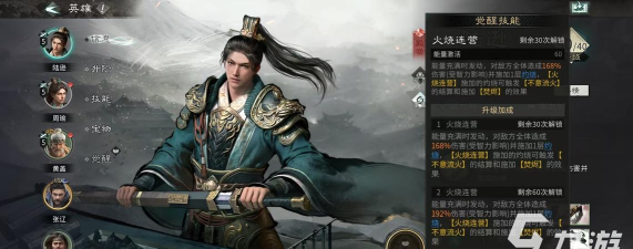 觉醒技能火烧连营,对敌方全体造成伤害,并施加一层灼烧,觉醒技能所附加的灼烧,可以触发天赋的结算以及焚烬效果。现在陆逊最佳的选择就是和黄盖、周瑜一起组成灼烧队。具体搭配方面,陆逊的技能选择轰雷掣电、野火燎原和兵无常势。周瑜的技能选择野火燎原、机谋巧变和轰雷掣电。黄盖选择向死而生、缮甲厉兵和一夫当关。士兵选择方面为两个藤甲兵和一个太平道师。其中两个藤甲兵和黄盖放到第一排,黄盖在最中间,后两排放置陆逊和周瑜,最后一排放太平道师。这样是为了让每个武将都可以达到最佳的效果,尤其是陆逊。