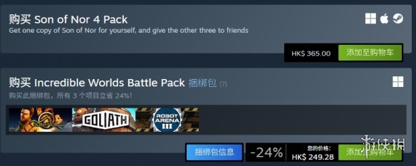 同时,游戏也包含在Incredible Worlds Battle Pack”捆绑包中,以优惠价249.28港币打包出售。