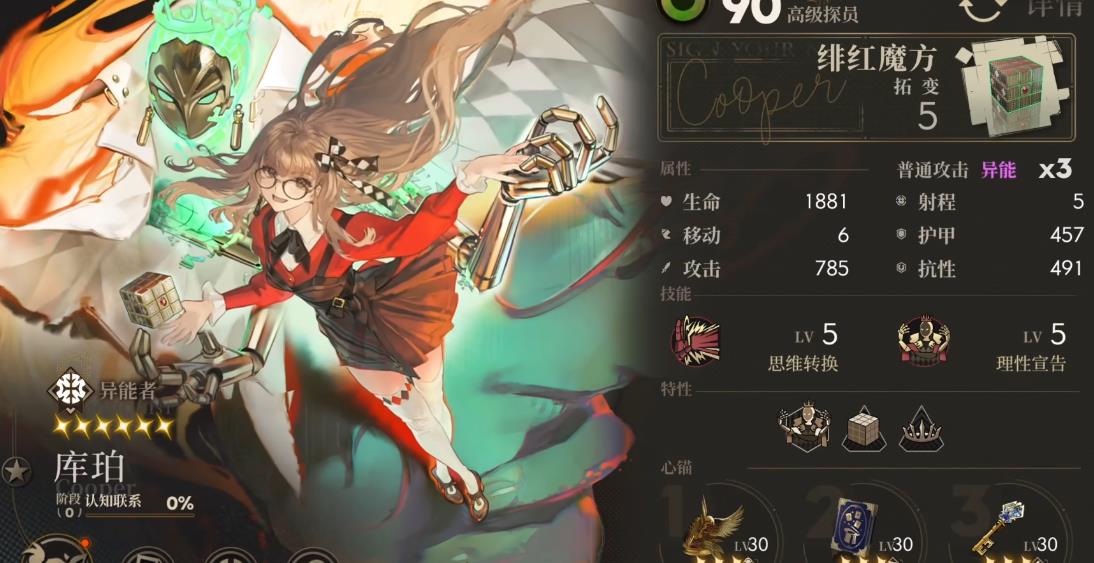 封装体名为绯红魔方,效果一是在她在场时让我方所有单位的克制攻击,在伤害结算时获得10%的增伤和15%的暴击率,该效果会让库珀在所有环境都可以作为辅C出场,与可以无视象位造成克制的噬象者较为适配。效果二是在受到任意治疗或者是使用技能后,可获得3%的攻击力和6%的暴击率,该效果持续时间永久,最多可叠加五层,共15%攻击力和30%的暴击率,不过注意的是该效果的触发时点在技能伤害结算后。