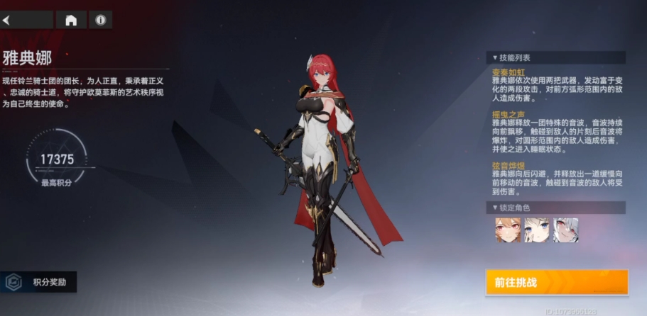 雅典娜的二技能是挥舞长剑攻击敌人,处于鸣刃且谐律层数为五的倍数时二技能的图标也会变成金色,提高伤害的同时降低敌人的护甲,这个技能同样能进行谐律判定。雅典娜的奥义是提高全队普攻伤害,自身神能达到满值,谐律层数会被重置并进入鸣刃状态,此时该状态期间普攻判定成功时队友周身也会产生谐律音爆给敌人带来伤害。闪避技是极限闪避成功时会进行谐律判定,或者重置当前的判定,闪避效果不处于冷却状态时会对附近敌人造成伤害并将其眩晕几秒的时间,雅典娜使用闪避普攻的段数不会被重置。