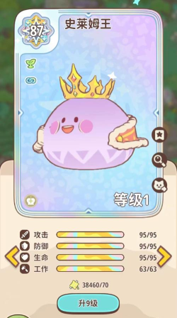 87的资质要比神兽稍微差一点,从外形来看,好像也并不是打硬仗的宠物。但不要被外表蒙骗了,这就是游戏中的一个王系宠物,自身的定位就有特殊性。属性的设定也是很有意思的,没有绝对的天敌,但是不会被任何的属性克制。主要的特点就在于拥有一个专属的特性,这个特性并不是摆设,而是可以真正的左右战局。例如在你的队伍中,带有一只不同属性的史莱姆,那史莱姆王就能获得强力的加成。带有火属性的史莱姆,普通攻击就可以直接暴涨80%。