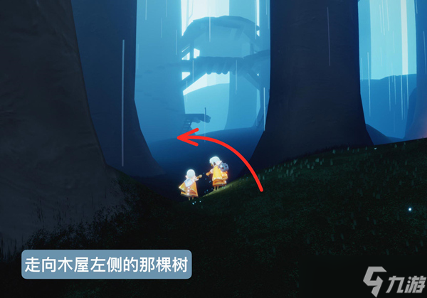 3、往树屋里面走,走到树屋的左边。
