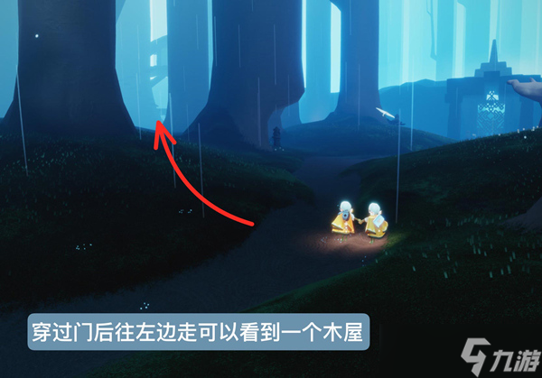 2、一直飞到第三扇门那里,左边有个树屋。