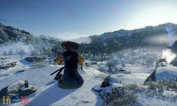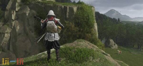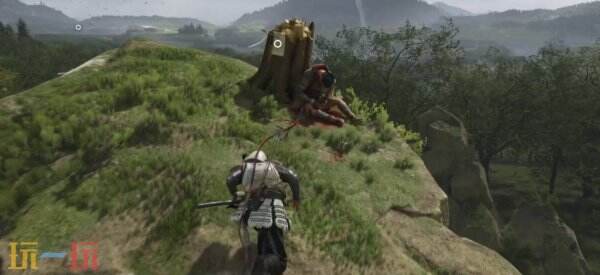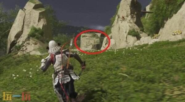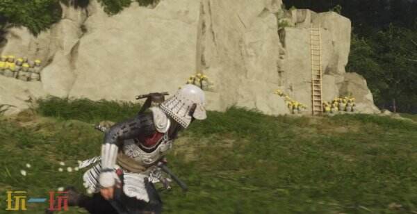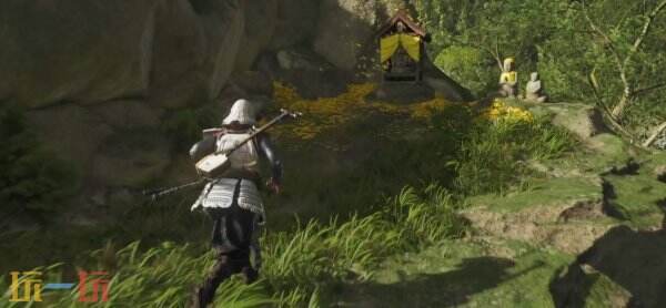 面对带有祭坛的石柱弹奏三味线「笃之曲」,对面会出现一名NPC为你放下梯子。