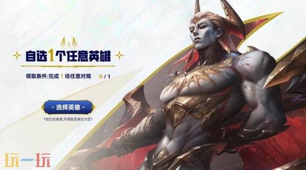2、完成1场任意模式对局,即可选自选1个任意英雄奖励。