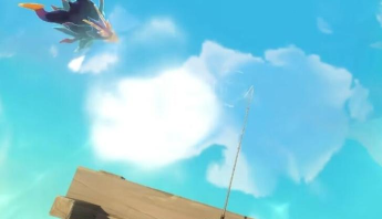 接下来要回到海边继续钓鱼,不过这次钓鱼的过程会复杂一些。鱼竿扔下去之后要等一段时间,屏幕上方会出现一个进度条,鱼竿开始剧烈晃动的时候就要注意看那个进度条。进度条中间有一块区域是比较醒目的,只要指针落在那个区域里点收杆就能成功钓上来,如果没点准或者点晚了鱼就会跑掉,得重新来过。