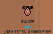 生命吊坠能在生命值小于25时,持续缓慢回血到25,相当于一个无限回血,是没有回血药剂时的最佳选择。