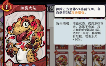 再者就是排组的选择,目前建议选择自带抽牌和自虐属性的牌组,小编在这里推荐几个像赤焰觉、春雪、嗜血大法、残心掌、血雾大法等等都是非常不错的,小伙伴们可以根据自己手中的牌组,来与这些特殊卡牌进行组合,效果能力更加惊人。