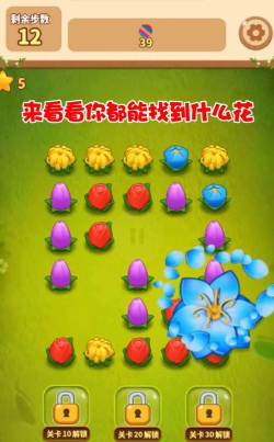 治愈性很强的玩法,还有赏心悦目的画面,这里的花朵类型特别多,大家需要在不同的花盆中种植三个相同的花,从而完成消除的任务。此游戏没有特别复杂的操作方式,只要用手指滑动屏幕,将三个相同的花束放在同一个花盆中,即可完成消除,每个关卡都有具体的分数要求,只要达到分数要求之后即可闯关。