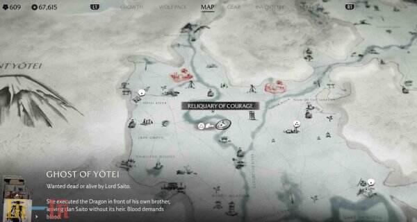 羊蹄草原中的勇气之庙,谜题暗示狼引少年朝羊蹄山。解法是将石碑四周前、后、左、右的狐狸雕像都转向西面山顶覆雪的羊蹄山,保证雕像朝同一方向即可。