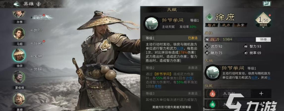 徐庶的定位是进攻型的谋士,和其他的纯输出或者纯辅助是不一样的。可以打出混合伤害,还能根据敌人的属性来精准的施加控制,这种能打能控的特性,就能让它适合多种阵容体系。从属性面板来看,徐庶的智力高达93在全武将中排名第九。同时还有62的初始武力值,要比普通的谋士更高一些,因此在面对物理型的武将时,也会拥有近战反击能力,避免传统谋士被晋升的尴尬。在进阶成将军之后,他的政治属性还有智力就可以进一步的提升,谋略伤害还有内政辅助能力,也可以同步的增强。
