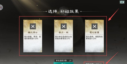 玩家在玩的时候就需要先搞懂核心机制,一开始会有100点血量,输一轮就可以直接扣血,赢的话血量就不会变化。累计输掉五轮或者是血条清零,那自然就会结束。不过好在没有参赛次数的限制,随时都可以重开,完全可以慢慢的尝试。进入游戏之后,还会面临效果,士兵,技能,英雄等一系列初始选择。第1轮有三次刷新的机会,而其中士兵和英雄有两次选择的机会,总共是6次选择的机会。初始效果选对之后,一开始就能站稳脚跟,建议选择奋力极可以给主动技能增加15%的伤害,输出的能力就能明显的提升。