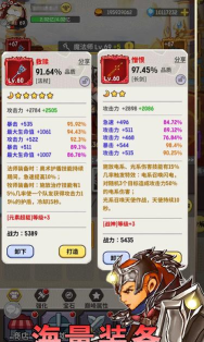 游戏中的核心玩法是大家熟悉的放置模式,不用手动操作,也能自动打怪爆装备。我们要做的就是盯着英雄等级,给他们提升战力,游戏全程都是自动闯关的放置设定,打boss必须要在60秒内解决,不然就会闯关失败。里面的怪物都有独特的类型,和不同怪物对战时的战斗场面,可以带来不同的沉浸感。游戏采用的是垂直页面设计,每一页的功能元素都很丰富,排布的也比较规整。