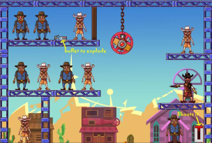 在卡通的世界当中,为了能够顺利的通过关卡,你在难度不断提升的时候,一样需要发挥手中的枪械,以及让子弹利用枪械射击的方式,精准的命中目标。相对于需要面对敌人展开射击的枪战手游,这一款的玩法特别的简单,也能享受特别轻松的事情。还需要发挥自己的智慧,利用每个关卡中正确的布局情况,才有机会通关。