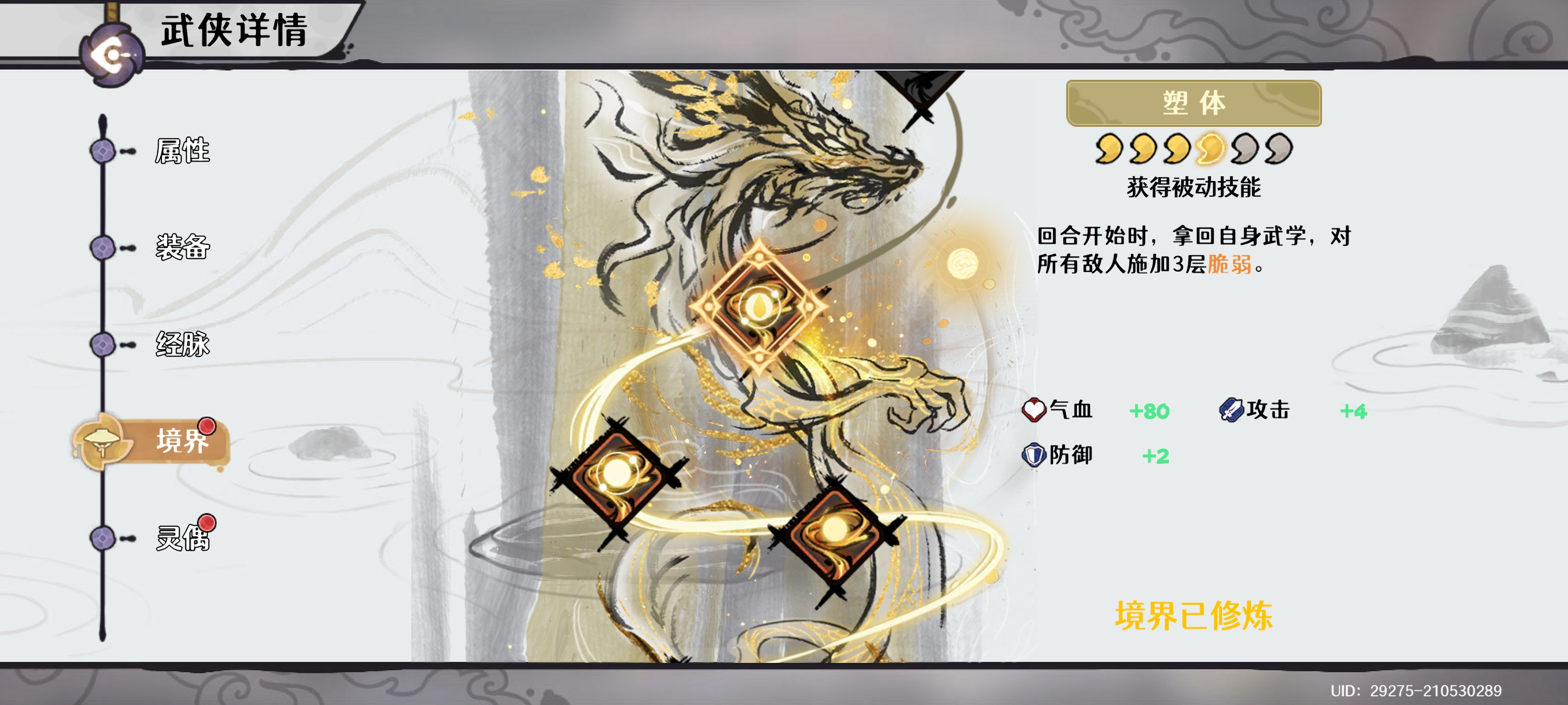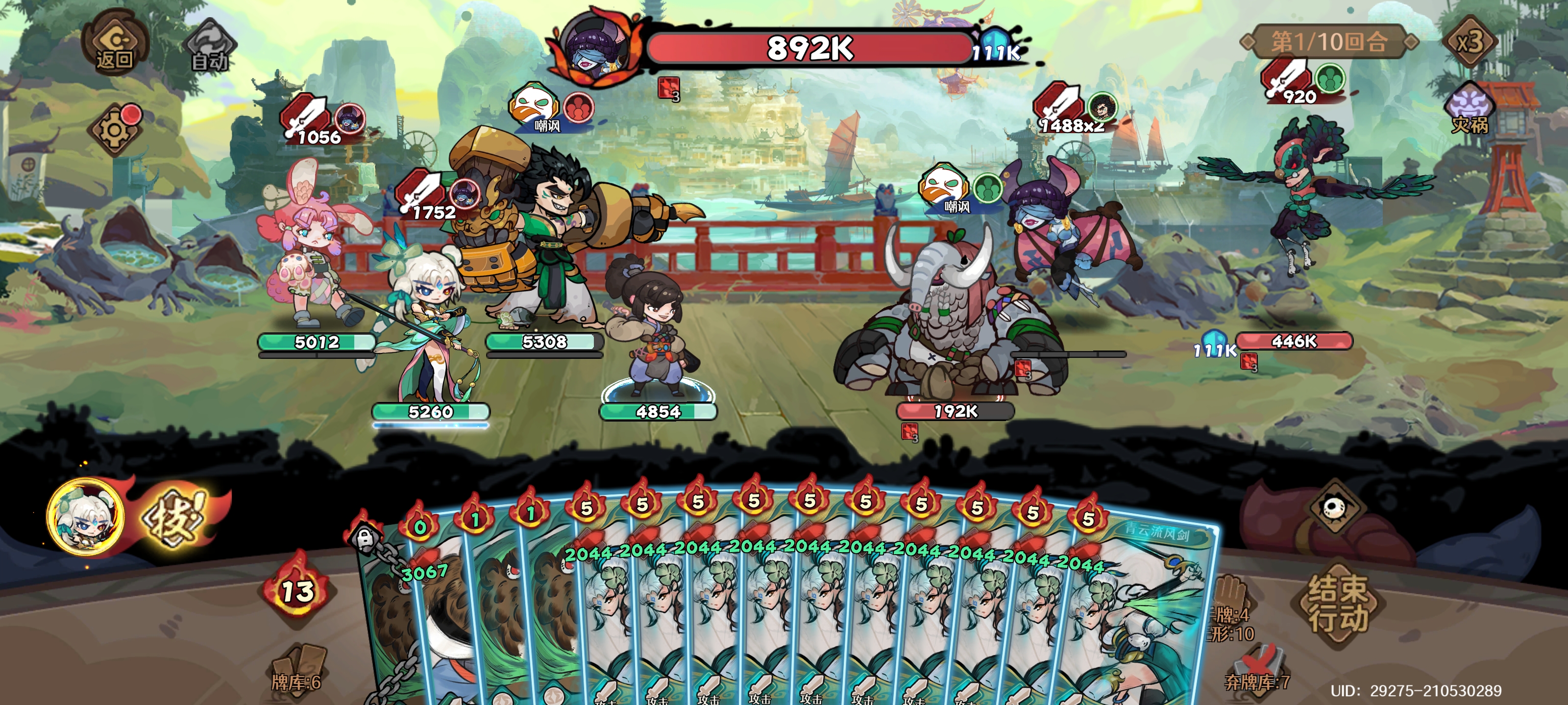 然后就是消耗所有手牌中虚无的自身武学,获得流风增伤buff,然后群体攻击。
