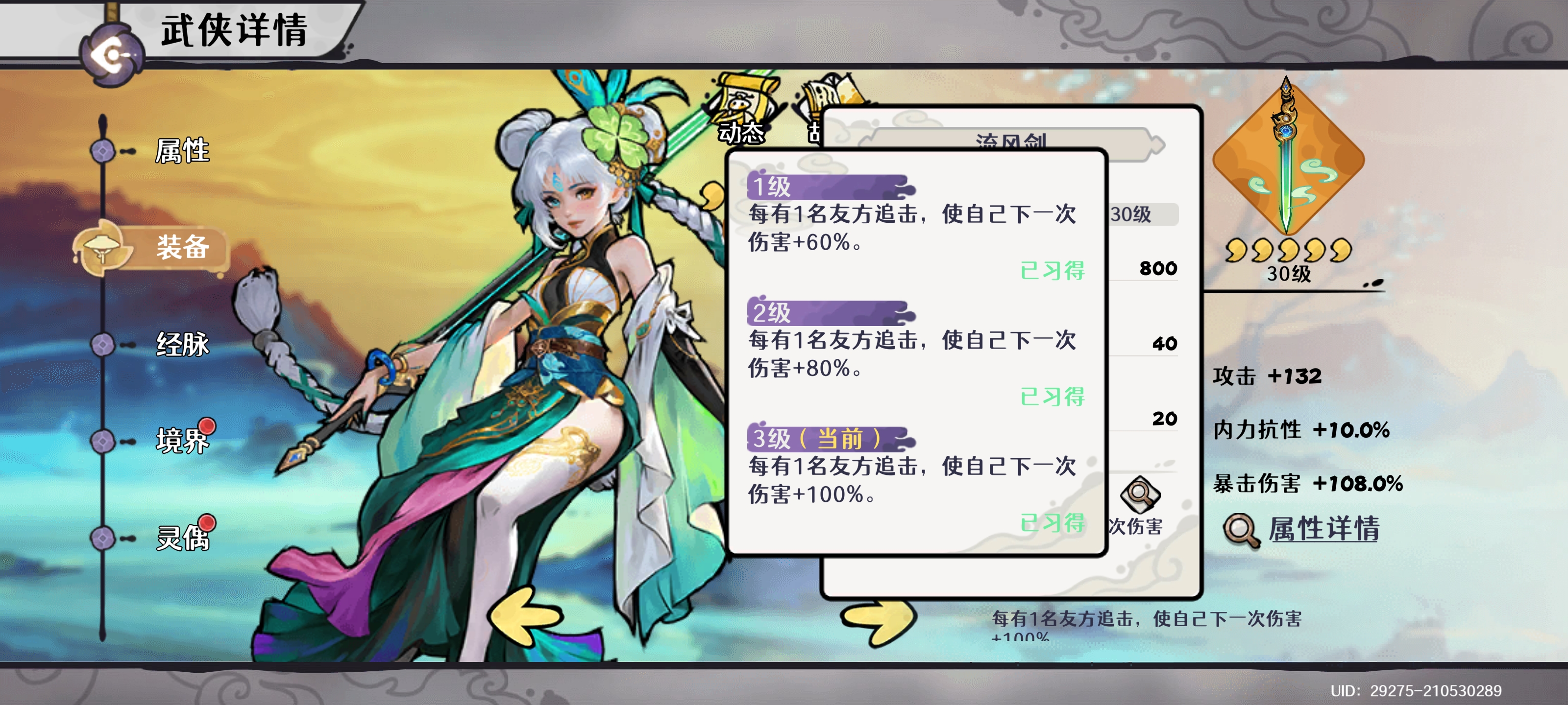 灵风幻影提升追击伤害和6点怒气,也是追击队很好用的一把神兵。