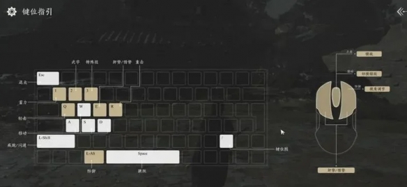 温馨提示:其中用的比较多的按键,有鼠标滚轮锁敌,Q攻击,E卸势,F气竭追击,1技能连续释放可快速造成气竭效果,R重击,SHIFT闪避/冲刺。