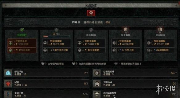 声望奖励非常重要,包括技能点、药水使用次数和巅峰点数等关键资源。
