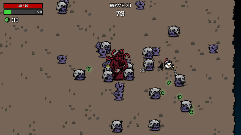 俯视角轻度Roguelike射击作品,玩家操控可同时持六种武器的拟人化土豆角色,在竞技场中对抗外星生物。每局开局可自定义角色特性,击杀敌人掉落金币用于强化武器或属性;生命归零后重开,但失败将永久解锁新角色与道具。机制循环紧凑,成长路径清晰,全程离线运行,适合短时高频游玩。