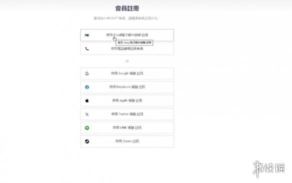 点击界面中的会员注册”,选择第一个NC 账号” 注册通道,支持使用QQ邮箱等常用电子邮箱注册。