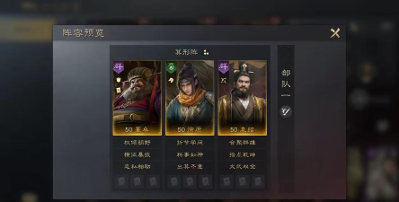 如果已经有该效果,额外提升1-2%主动战法发动率。整军在己方三人均为盾兵时生效,自带战法变更为专属战法,对各属性最高的敌军添加畏惧并造成一定伤害。